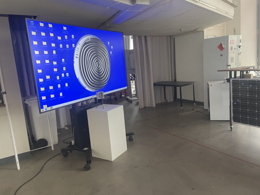 Alongside the presentation, Nicu installed a small live “organism” built on a Raspberry Pi. It ran a reaction–diffusion system that responded to movement — waving a hand near the sensor would shift parameters and push the pattern into new behaviors. The setup sat in the room during the watch-party, evolving continuously and reacting to the audience.