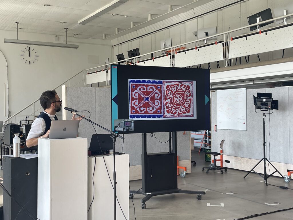 The presentation was part of ALPACA — a conference and festival dedicated to pattern, code and cultural expression. The UDK watch-party offered a hybrid format: in-person discussion in Berlin, paired with remote hubs tuning in across Europe.