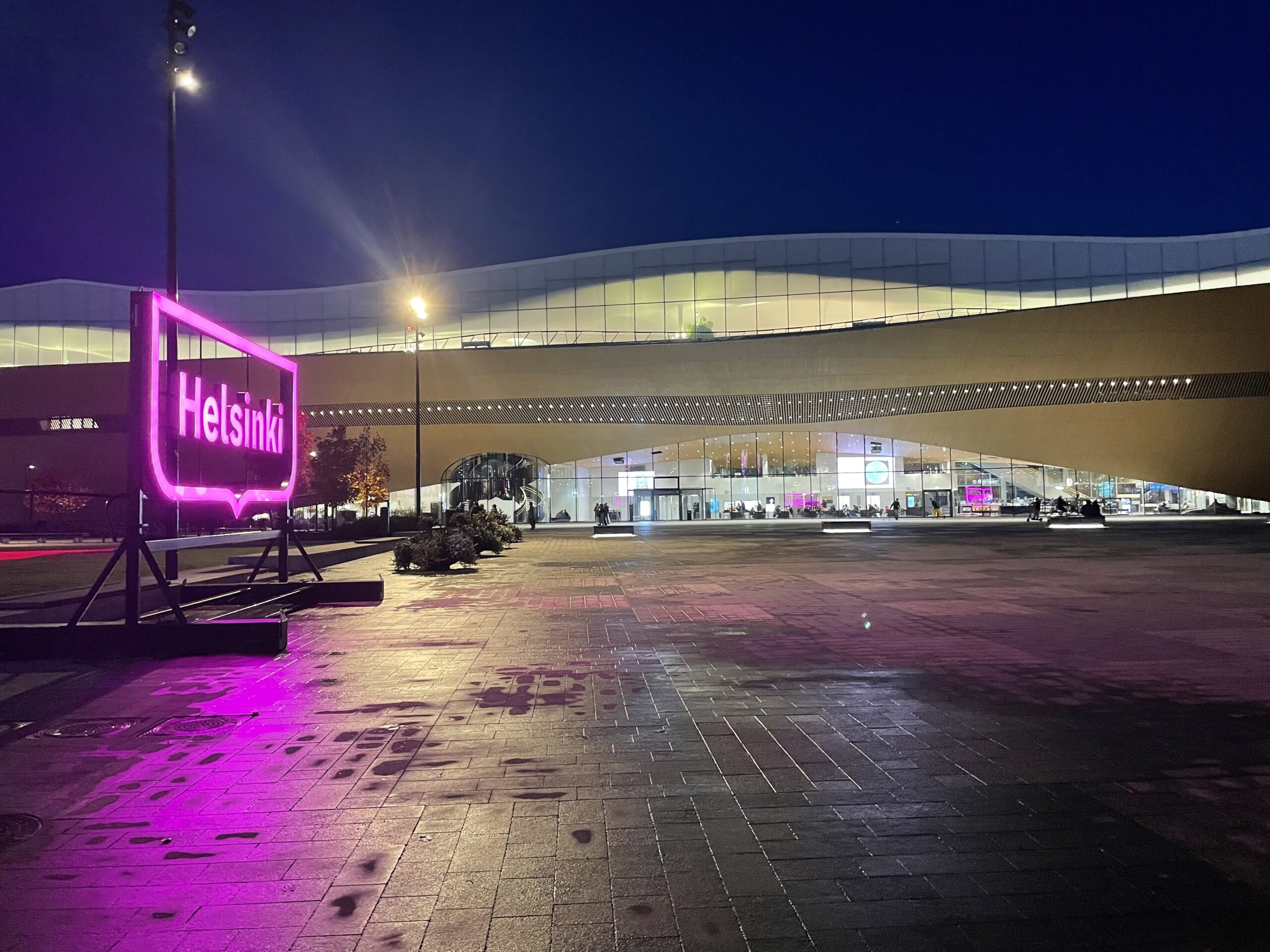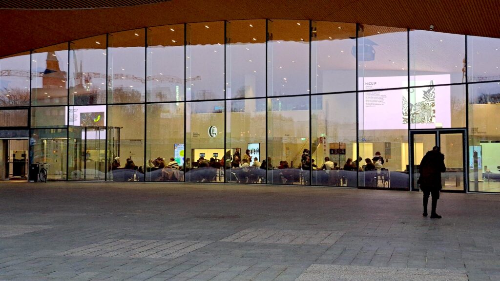Displayed on Oodi’s large public screens, the work gained a strong physical presence through scale and placement. It was visible both inside the main hall and from the exterior plaza through the building’s glass façade, functioning as an open, pass-through installation. The public setting emphasized the tension embedded in the image’s structure.